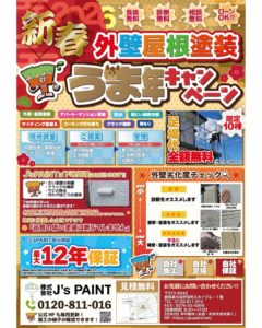 さて、J’sPaintでは現在『新春 外壁屋根塗装うま年キャンペーン🐴🎍』を開催中です‼